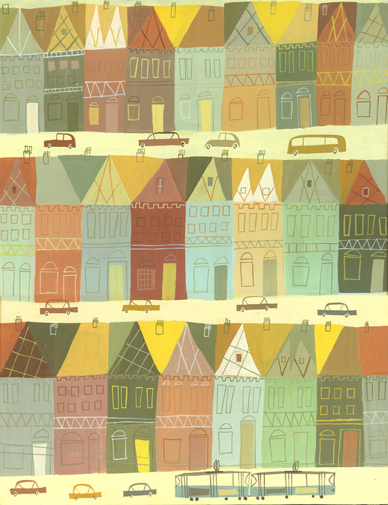 Ein ähnliches Gefühl habe ich auch bei den Bildern von Matte Stephens. Von Beruf Maler (und er kann davon leben!) malt er seine Bilder mit Gouache und lässt sich dabei von Grafikdesign, Industrial Design und Kunst der Mitte des 20. Jahrhunderts inspirieren. Auf seinem Blog veröffentlicht er regelmäßig seine Bilder, lohnt sich also, da öfter mal begeistert reinzugucken.
